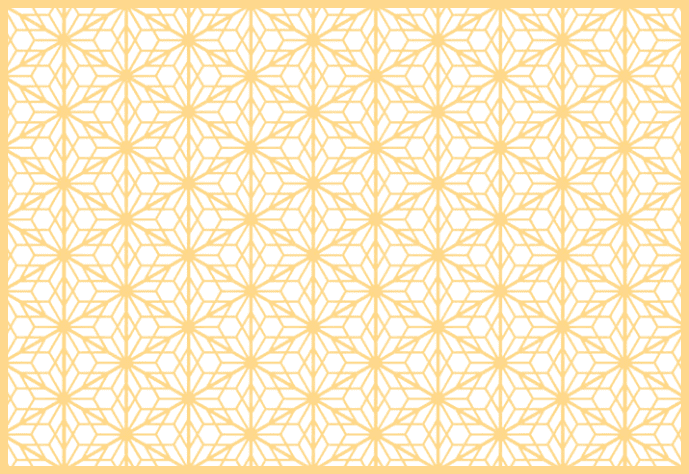八重桜亀甲|Yae-zakura-kikkō 印象的な八重桜の文様の中心に亀甲文様を配し、華やかさと安定感を併せ持つ意匠に仕上げています。 「豊かな教養」、「しなやかさ」に加え、亀甲は長寿や吉兆を象徴する文様とされています。