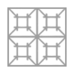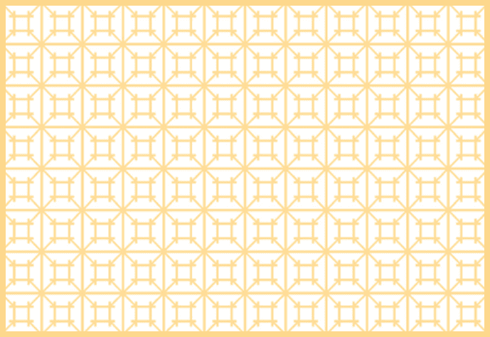 四つ葉井筒つなぎ|Yotsuba-izutsu-tsunagi 井筒は井桁をかたどった形で、水の恵みや暮らしの安定を象徴しています。 四つ葉の構成が連なることで、繁栄や円満、つながりを表す、落ち着きのある意匠です。