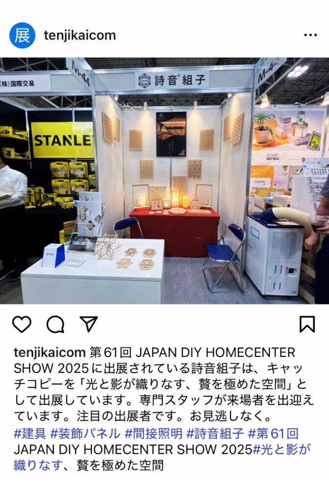 このたび「第61回 JAPAN DIY HOMECENTER SHOW 2025」に出展し、 多くの来場者の皆さまに組子細工の魅力をご体感いただきました。