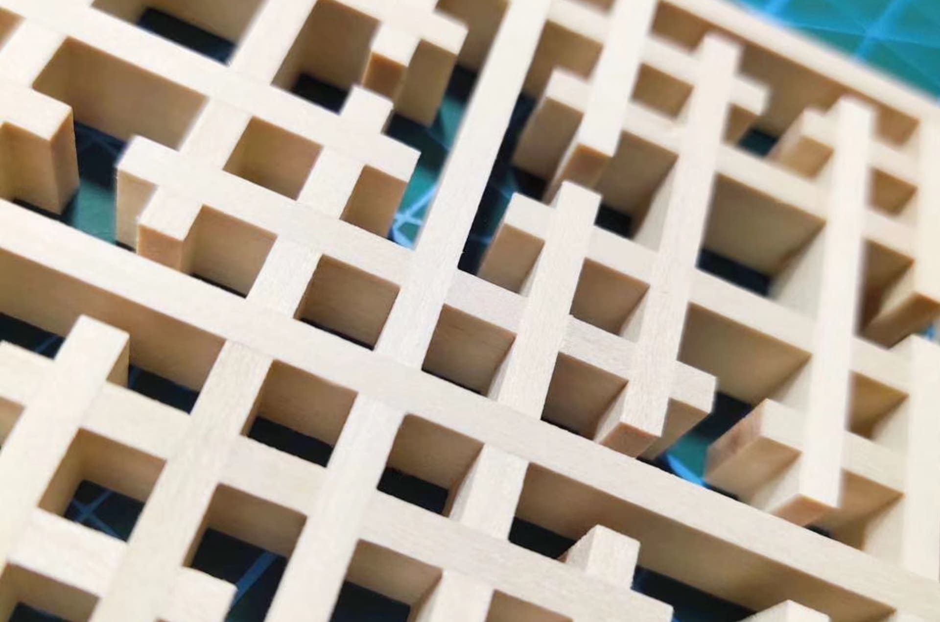 井桁を組み合わせ、枡形が連なって見える井筒つなぎ文様。