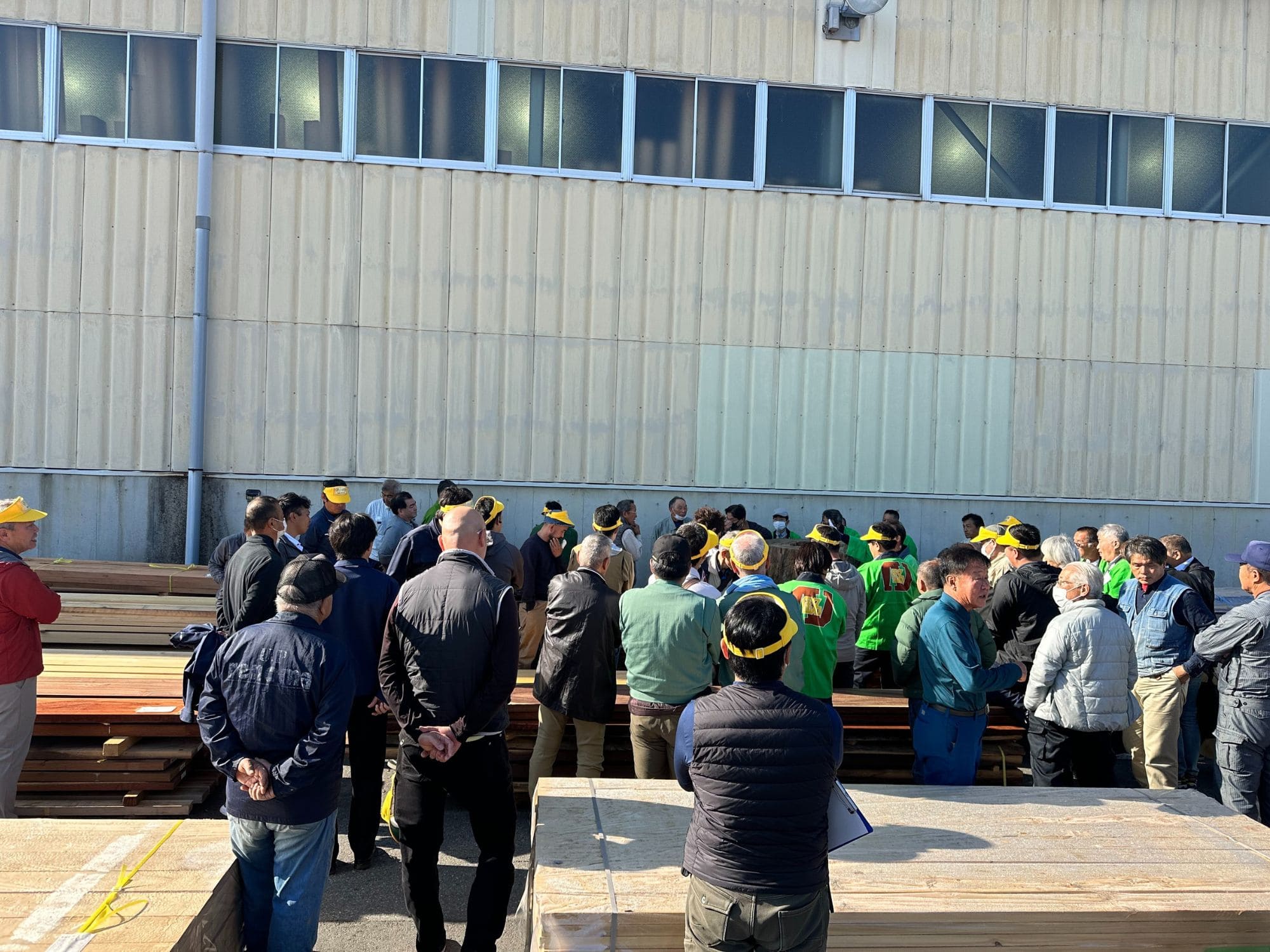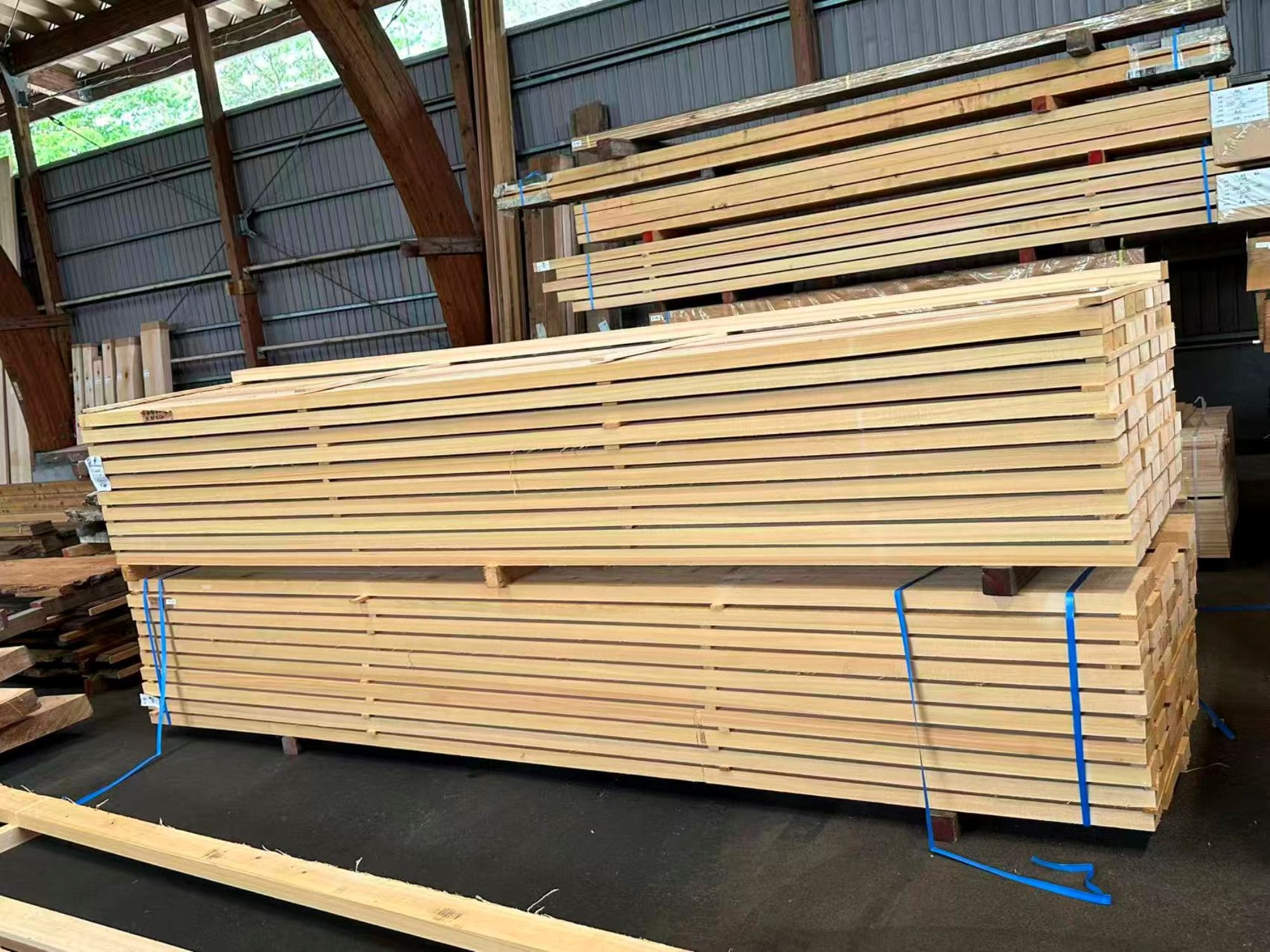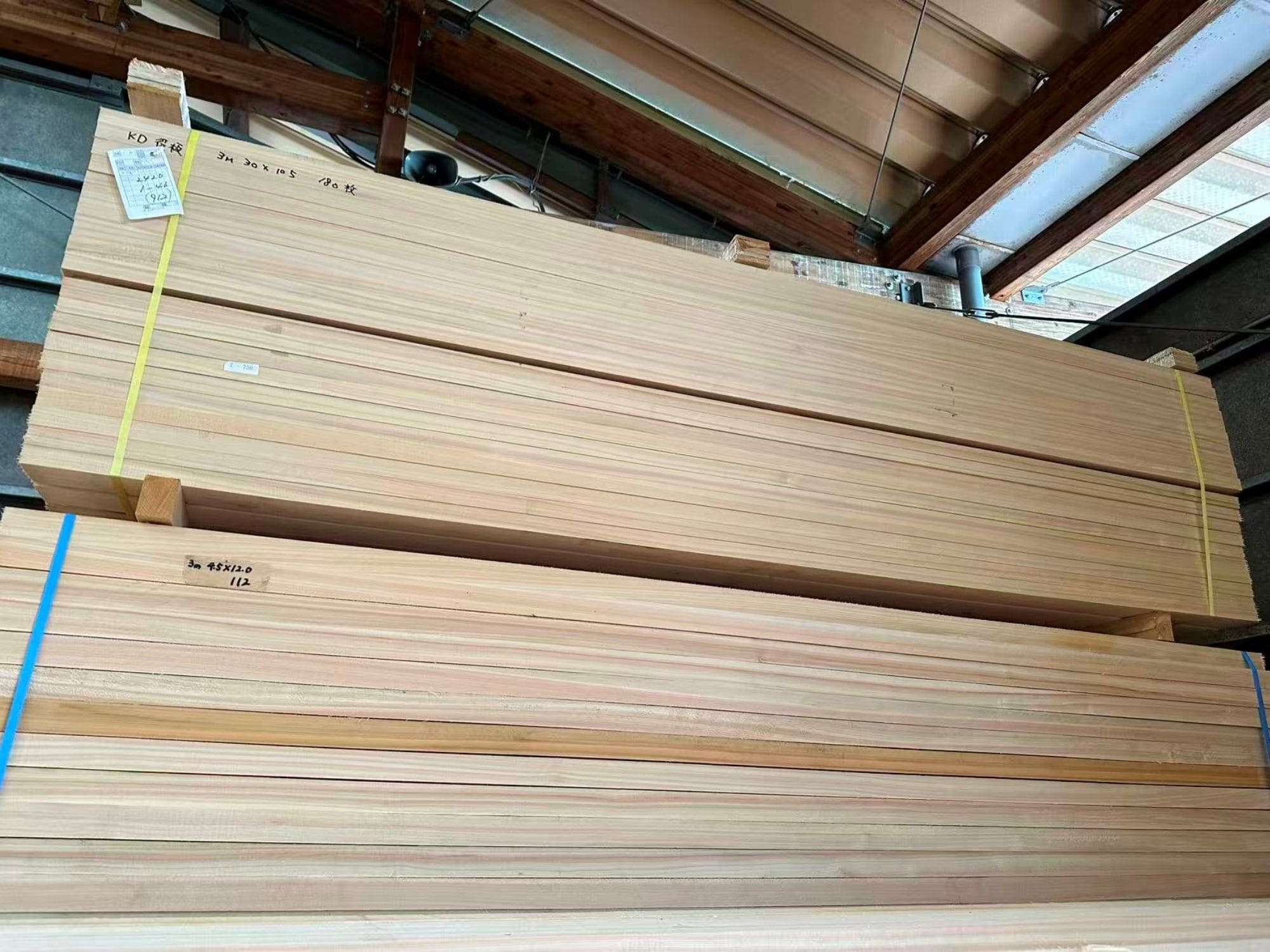 組子の木材|Wood 詩音組子では、主に国産材の「ヒノキ」と「スギ」を使用しています。また、木そのものの色合いや風合いを活かし、作品の完成度を高めるために、 「吉野桧」や「秋田杉」「神代杉」などの国産銘木に加え、ウォルナットやブラックチェリーなどの海外高級材を用いることもあります。 作品に最適な木材を探し求め、私たちは定期的に各地の銘木市場を訪れています。 競りに参加し、年輪や色味、乾燥状態を職人の目で確かめながら、良質な材のみを選び抜きます。 組子細工の主要材料であるヒノキは日本固有の樹種で、法隆寺をはじめ、古くから宮殿や神社仏閣の建築に用いられてきました。 詩音組子では、その中でも「四面無節」という最上級で、長さ3メートル以上の材料のみを使用しています。 手間を惜しまず一本一本を選別するのは、すべて自らの作品に「贅」を尽くすためです。 林業とのつながり 詩音組子のものづくりは、森から始まります。 林業に携わる方々とのつながりを大切にし、木が育った背景にも目を向けています。 森と人、伝統技術と現代空間をつなぐ存在でありたいという想いを、ものづくりの原点としています。 全国木材組合連合会より「合法木材推進マーク」の使用に承認【第 A-00101号】。 詩音組子では、合法性が確認された木材のみを使用しています。 私たちは、今後も「合法木材(Goho Wood)」の普及啓発および推進に取り組んでまいります。