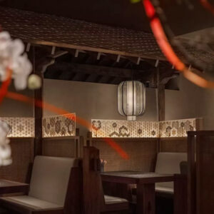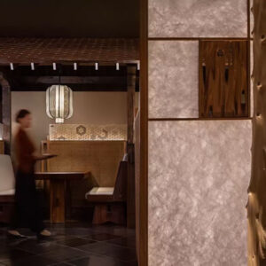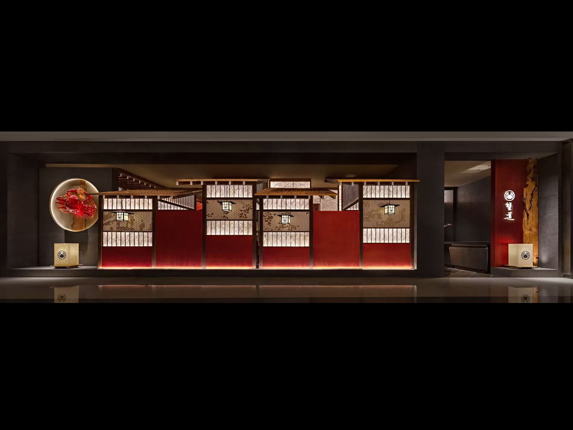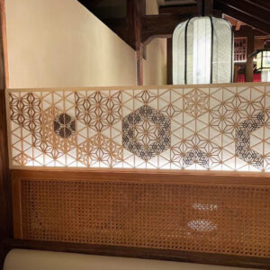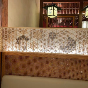 Project: Japanese Restaurant | Crab Specialty – KANIDŌ Kumiko Patterns: Auspicious (Senbonkoshi, Asanoha, Kawari-Asanoha, Yae-Zakura), and Abstract (Kogetsu no Shirabe)