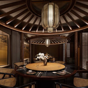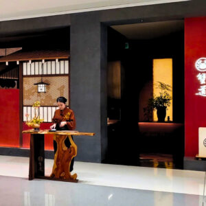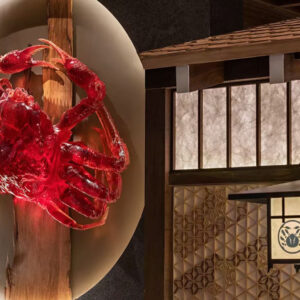 The bold red crab sculpture, traditional carved ranma, and the expressive grains of the timber elements— “Kogetsu no Shirabe” receives all these dynamic features and brings them into a harmonious, effortless balance.